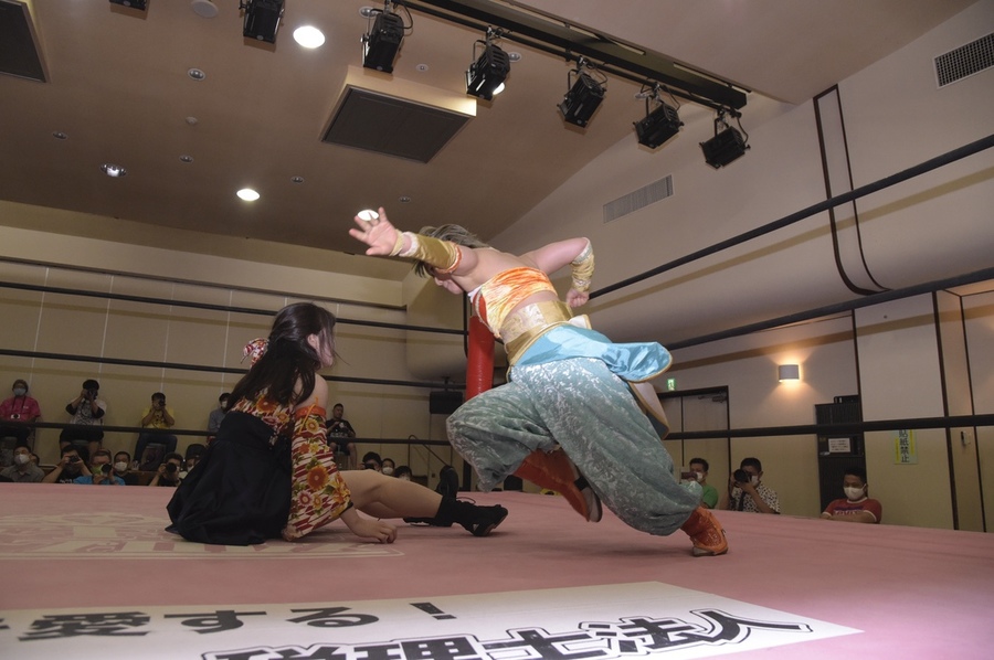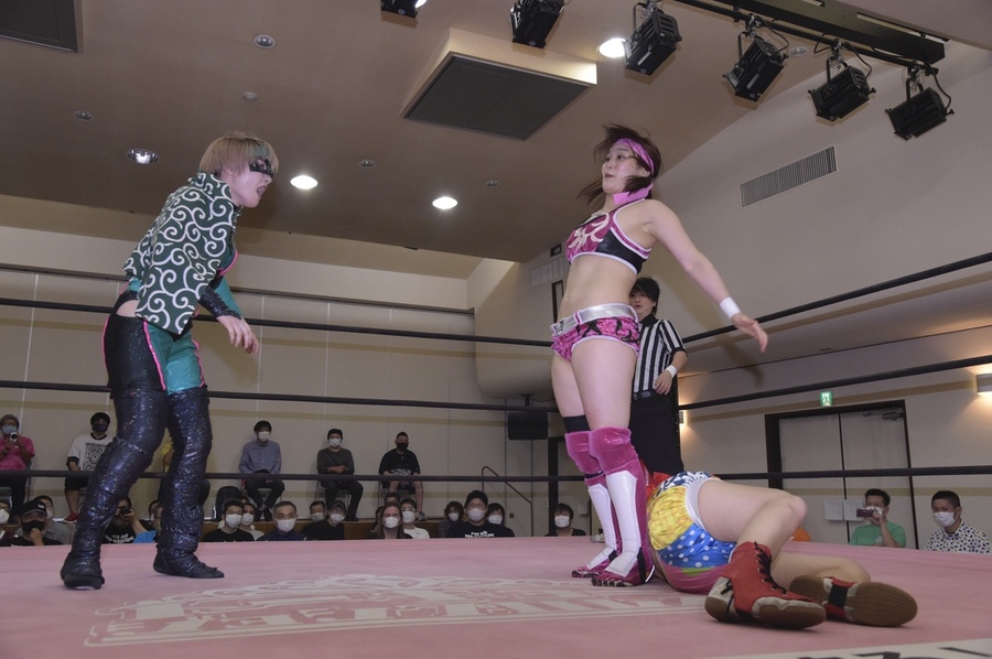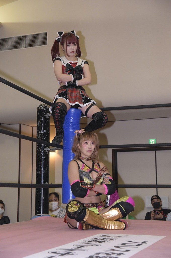 Haruna Neko really nails wrestling like a cat. She spent some time repeatedly scurrying through Sena’s legs, and it was some top tier catting.