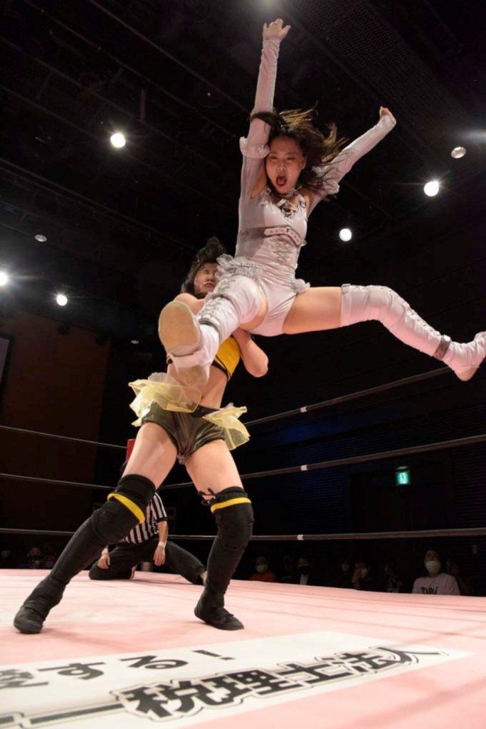 A big part of that is the dynamic between the two. They’re a classic big lass, little lass pairing, Suzume the heroic babyface taking the bulk of the heat and Mirai as the destroyer coming in and cleaning house. Then, when they did get their two-counts, you wanted to believe, you wanted the improbable to come to pass.