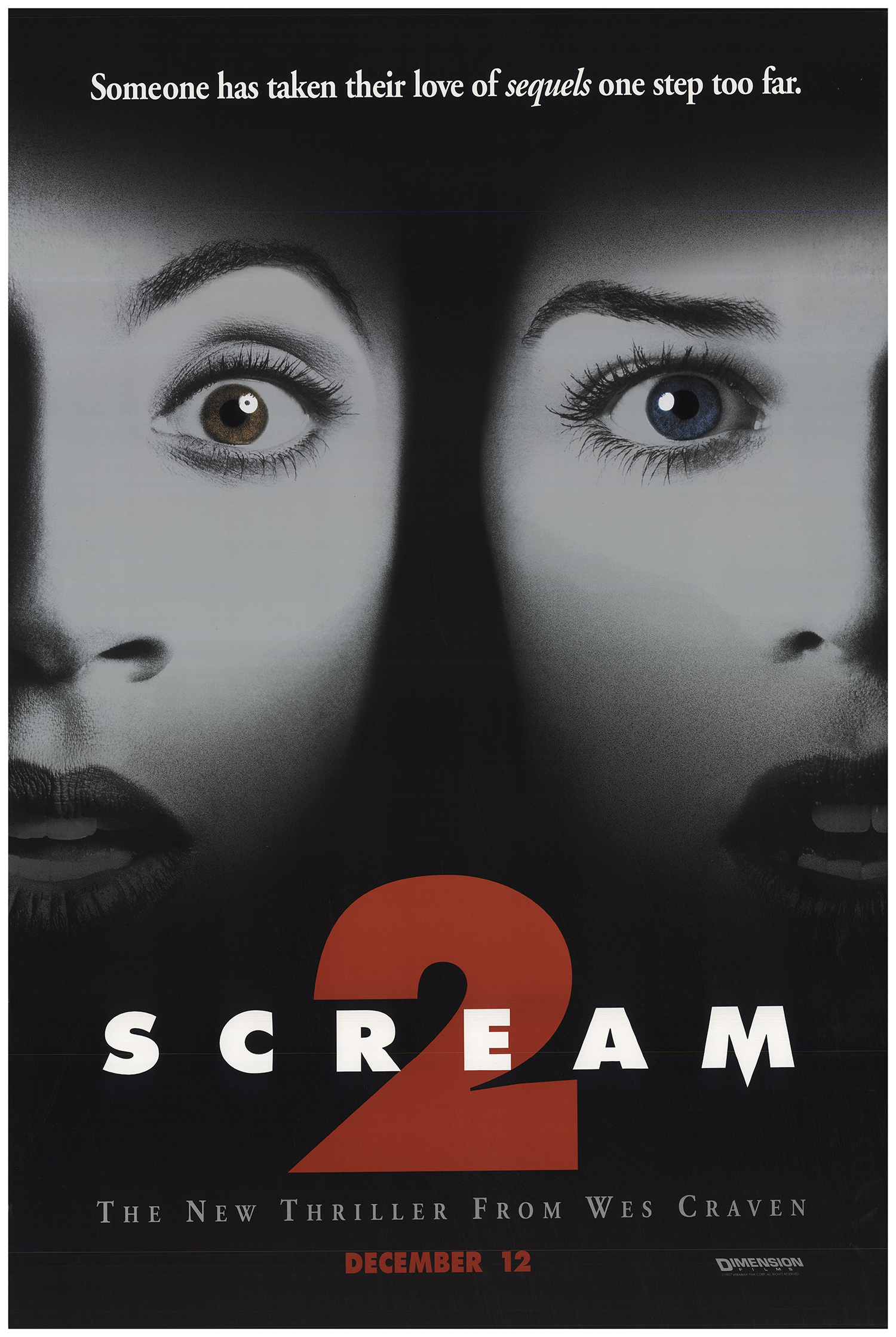 Worries about the script or not, Scream 2 starts where you’d want it to. We’re dropped back into a world where the events of the first film have been adapted for the big screen. Unfortunately, a packed opening night screening sees a young woman brutally murdered by Ghostface in front of a baying audience who are convinced it’s a publicity stunt. The meta begins!
