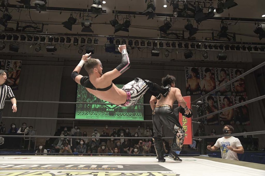 After the unusual formatting of the opener, this was a more straightforward affair. Brookes kicked things off with a cheap dropkick before going after HARASHIMA’s arm.