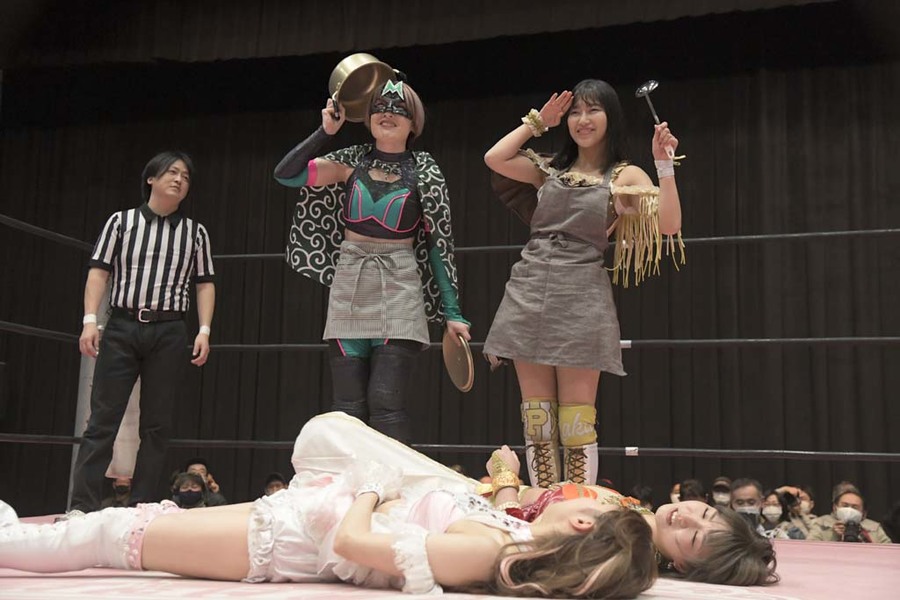 Daydream (Rika Tatsumi & Miu Watanabe) and Nao Kakuta defeated Maki Itoh, Suzume and Pom Harajuku