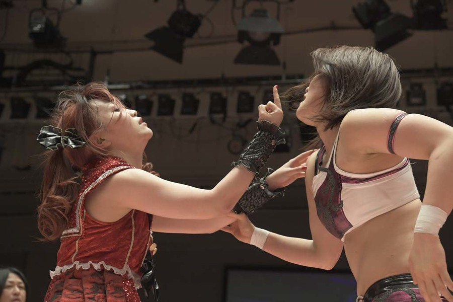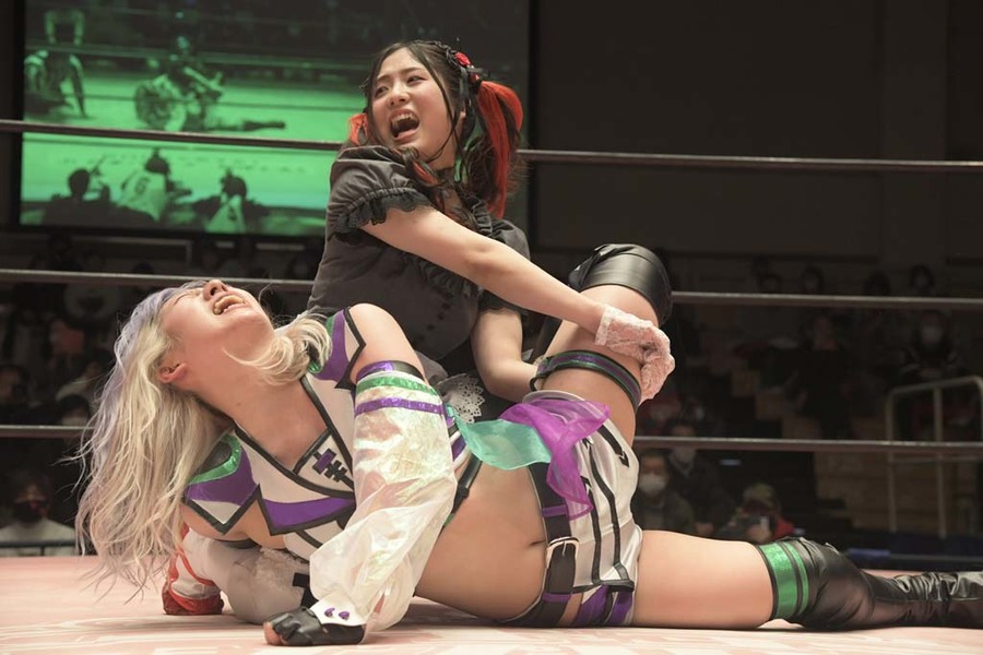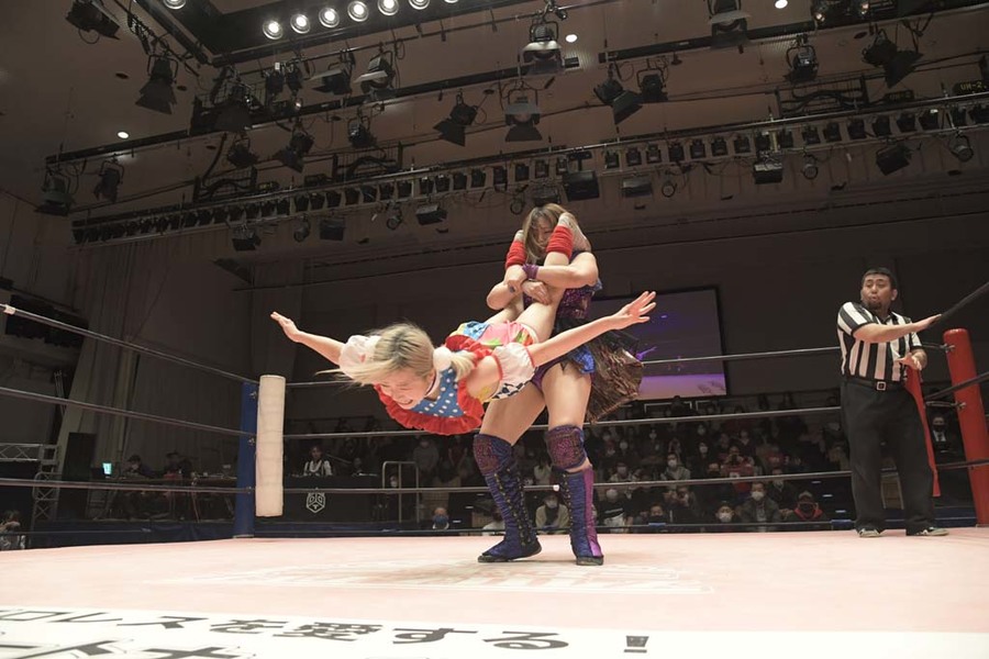 The Bakuretsu Sisters (Nodoka Tenma and Yuki Aino) defeated Yuki Kamifuku and Mahiro Kiryu to retain the Princess Tag Titles