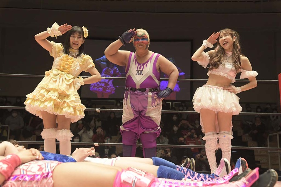 Miu Watanabe, Nao Kakuta and Mirai Maiumi defeated Aja Kong, Mizuki and Raku