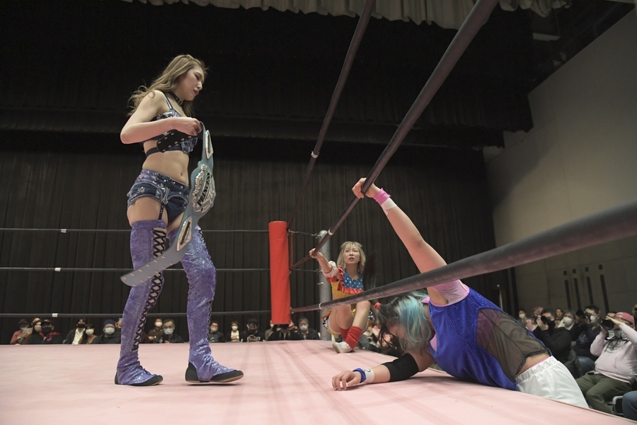 Rika Tatsumi and The Magical Sugar Rabbits (Yuka Sakazaki & Mizuki) defeated The Up Up Girls (Miu Watanabe, Hikari Noa & Raku)