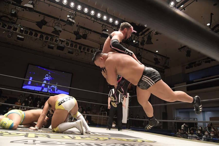 Danshoku Dieno, Saki Akai and Makoto Oishi defeated Akito, Toru Owashi and Keigo Nakamura
