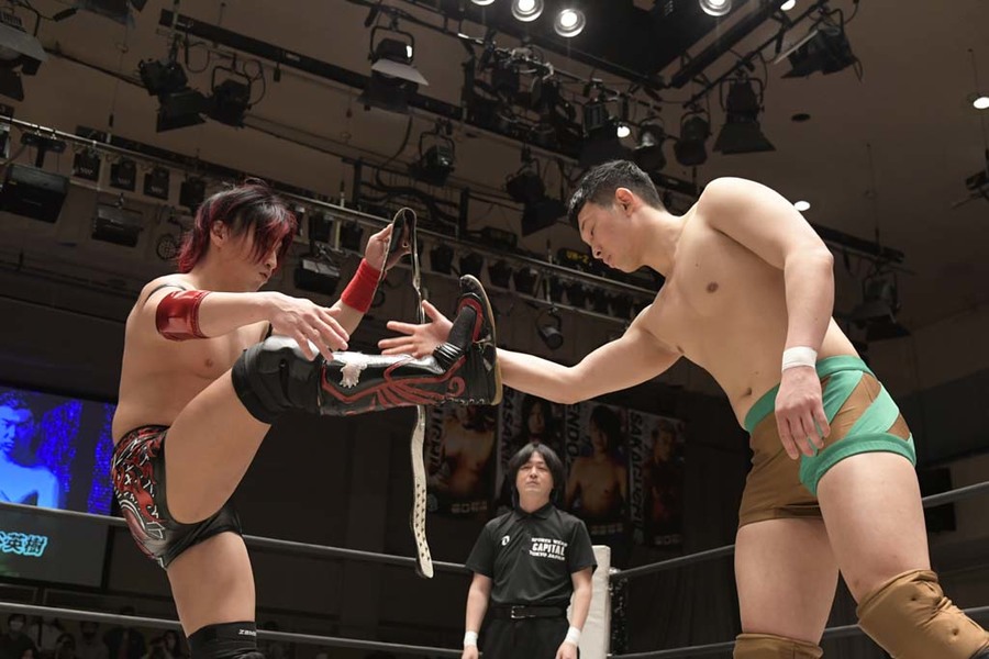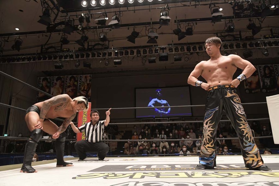 And it caught me off-guard. When they started by grappling for control on the mat, I settled in for a lengthy back and forth. That feeling was solidified when they began trading strikes, HARASHIMA making sure to flex every muscle as he waited for Sakaguchi’s kicks, as they give off the impression of two old friends happy to engage in a game of one-upmanship and in no hurry to get the job done. That spirit of friendship wouldn’t linger, though. When it’s Sakaguchi kicking you, it’s hard to keep smiling, and things suddenly exploded into a flurry of action that saw HARASHIMA smash home with a Somato and steal away with the win much sooner than I saw coming.