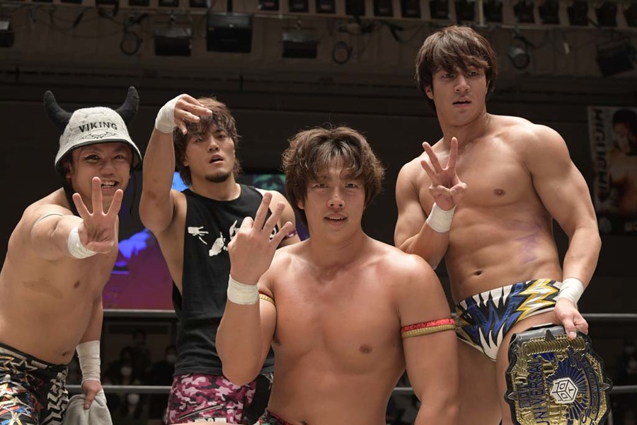 Team Thoroughbred (Sanshiro Takagi, Yukio Naya, Chikara and Yakan Nabe) defeated Kazuki Hirata, Antonio Honda, Shinya Aoki and Super Sasadango Machine to win the KO-D Eight Man Titles