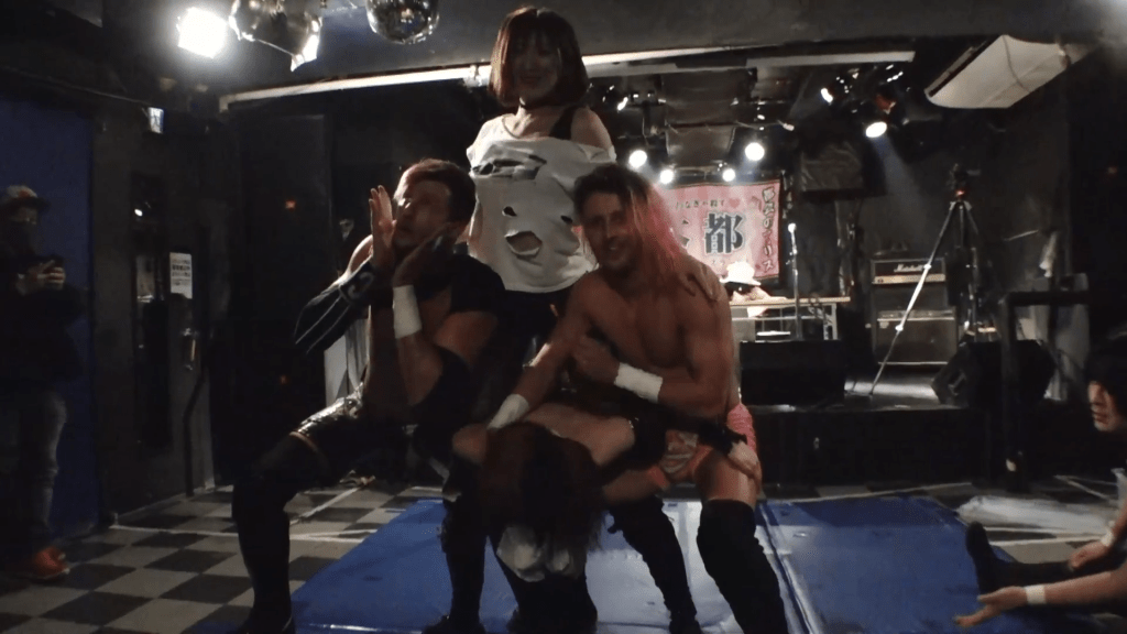 For ChocoPro 101 took place in the Heat-Up Dojo, and it was proof that the room does not make the promotion. Just look at the finish to the main event, Akki leaping over the top rope, falling through and out of the camera to eliminate both himself and Tetsuya Izuchi from proceedings and leave Mei free to get the win. That’s the kind of camera trickery we saw from them all the time in Ichigaya, so it got a big pop from me when I saw them pull it off in another venue.