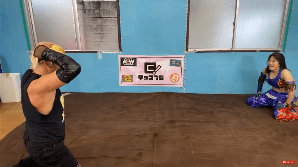 Even better than that, was Lulu and TAMURA’s wander through the building, as TAMURA grabbed the opportunity to show off the facilities and get himself some free advertising. On the way, he tortured Lulu via various pieces of exercise equipment because it’s Lulu, and when else are you going to get a chance to potentially beat someone via treadmill? It was pure ChocoPro, injected with that wonderful sense of invention that they have which proved to be just as potent a jab when taken away from its home venue. Yes, not every ring will have a handy nearby treadmill for them to use, but it shows how adaptable this company has become, and I’ll never question them again.