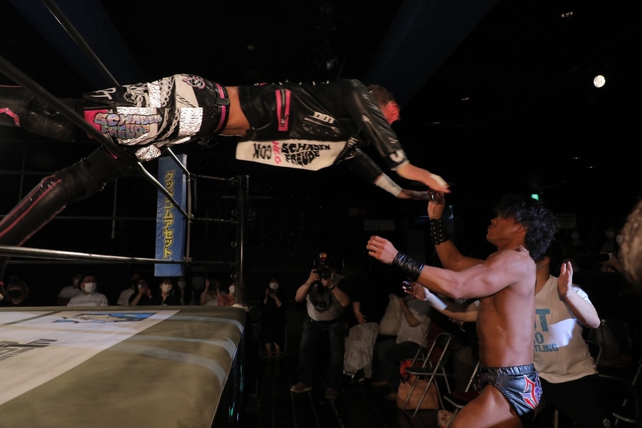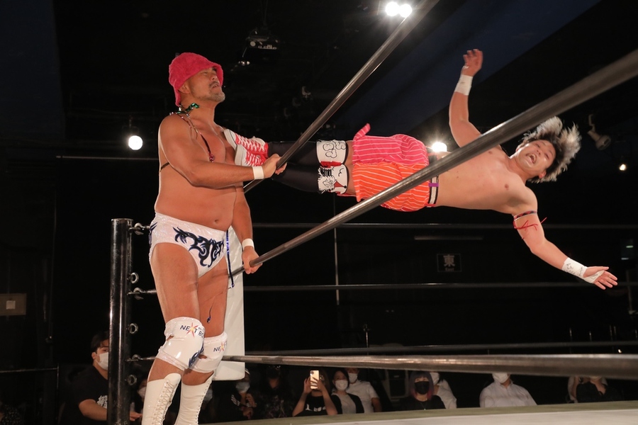 Some of the transitions in this match were exquisite. These two former stablemates leaned towards the technical, battling between submissions and covers as they tried to come out on top. It was the little things that stood out, though, moments like a turnbuckle pad coming undone as Akito tried desperately to grab it and prevent Takeshita from pulling him back. It’s such a simple spot, but something I can’t remember seeing before, and it instantly grabbed my attention.