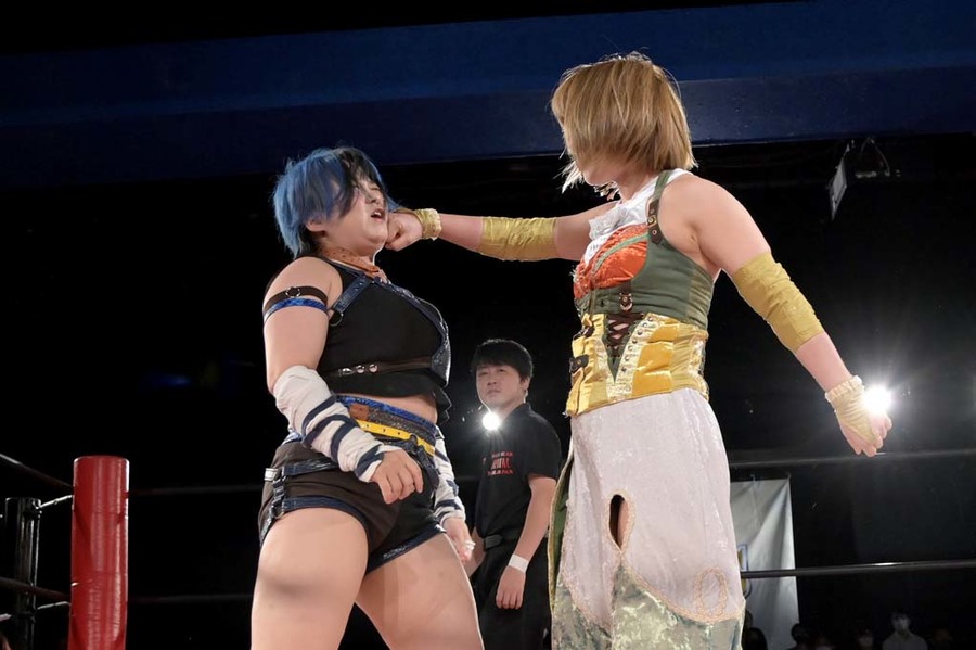 For the first time since Itoh won the Princess Cup and made her match with Yamashita at Wrestle Princess official, Miyu and Maki were on opposite sides of the ring. Any worry that their recent teaming up has taken the edge off their feud went out the window quickly, tensions simmering as they started the match together. However, they were smart enough not to give too much away, keeping their interactions to a minimum. We already know those two are an exciting pairing, so we only need hints to keep the anticipation up.