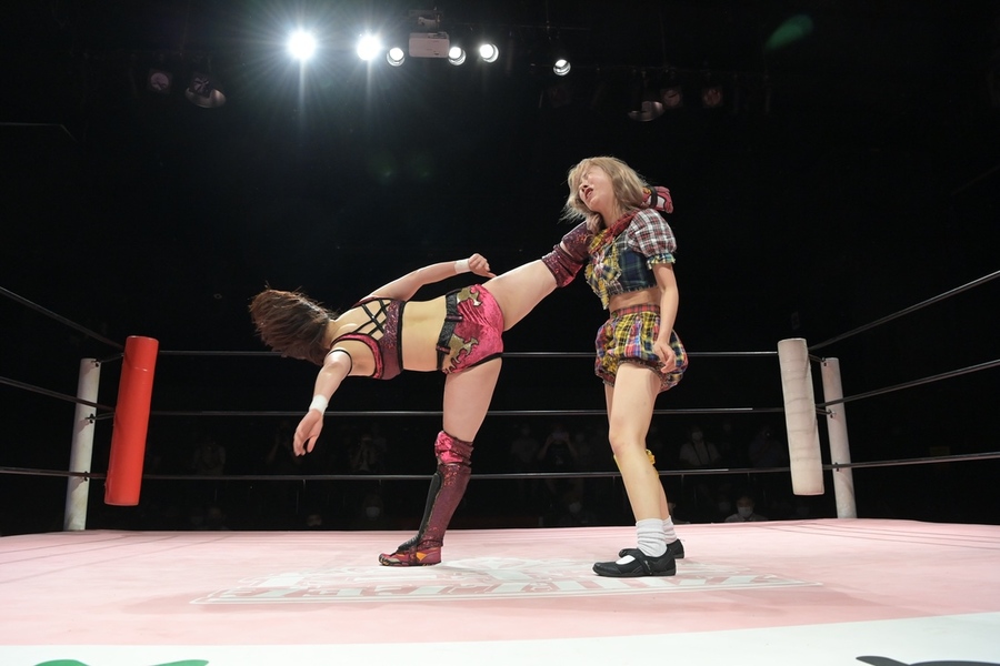 Kamiyu working the dominant veteran role was a perfect fit. Portraying arrogance is one of her strong suits, but now she’s got the in-ring talent to back it up. She repeatedly booted the rookie in the face, taking her time as she dismantled Kaya and making sure to poke her in the eyes a few times too.
