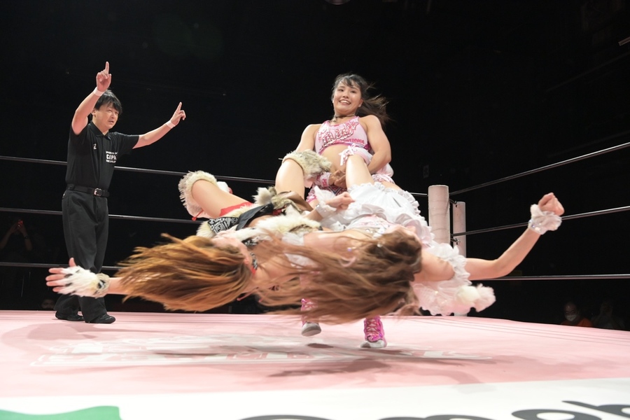 Maki Itoh & Yuki Aino defeated Nao Kakuta & Moka Miyamoto