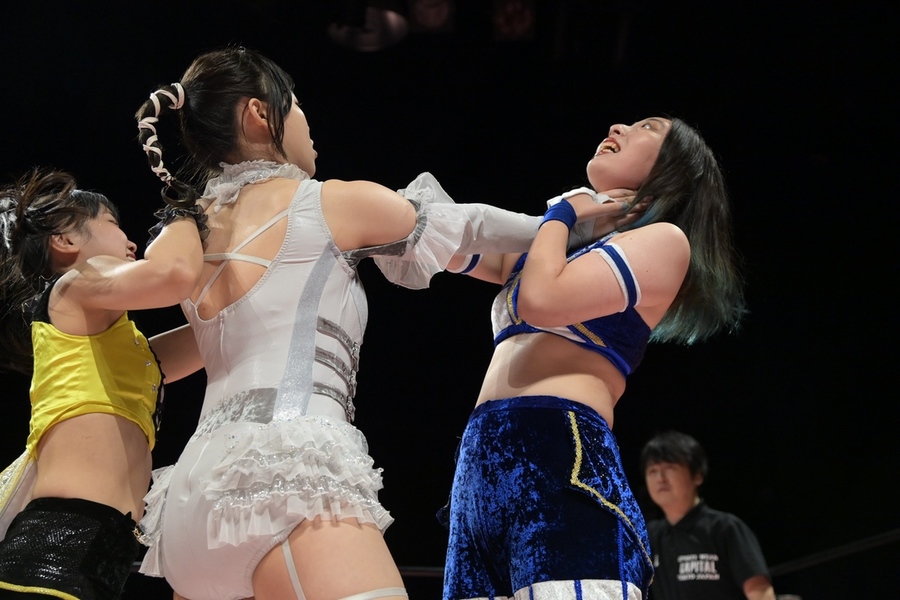 They may have been only a week removed from a war that saw Miyu crush the dreams of fans who like seeing Itoh swear on Twitter, but 121000000 are back, attempting ridiculously elaborate headbutts and bickering. This match was designed to re-establish them as a team, and it did its job.