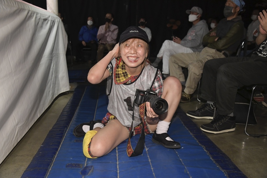 Pom has been learning from God Raku and picked up some mischief of her own. She took her camera down to ringside, stole a bib from a photographer and then used her disguise to launch a sneak attack. It left poor Hikari so frustrated that she ended up pulling said photographer into the ring and getting her involved in the action. Fair play to the lass. She never once stopped taking photos, even as Noa lined her up to be dropkicked in the corner (don’t worry, she escaped before the damage was done).