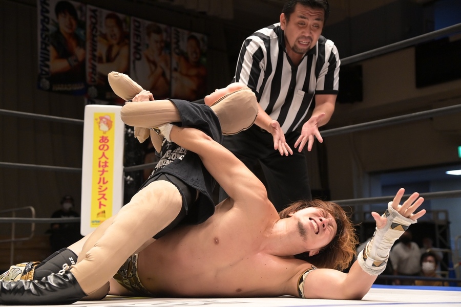 I know I raved about Hirata wrestling inanimate objects last month, but I’m going to need to do it again. This time, he was going solo against Yoshihiko, so the mad bastard only decided to do a fucking limb match.