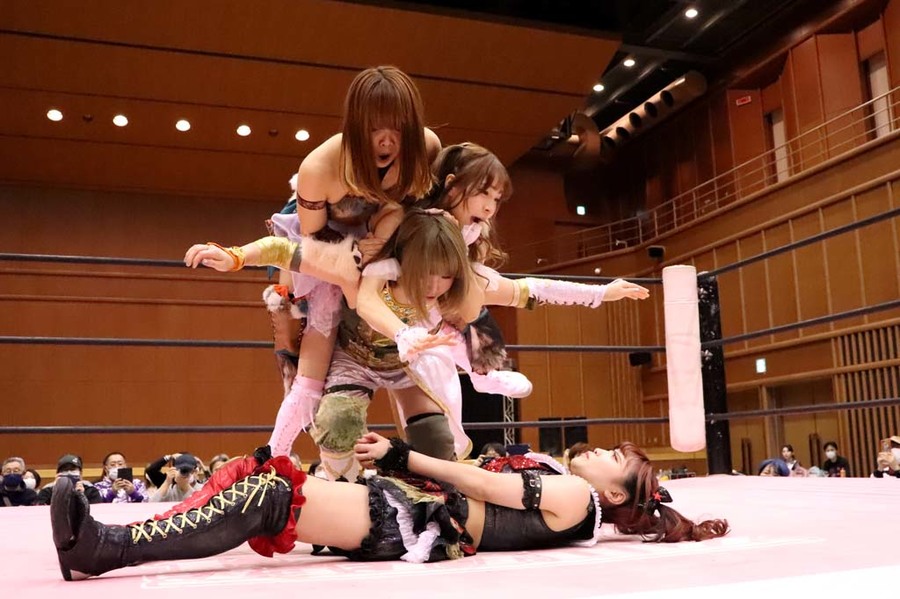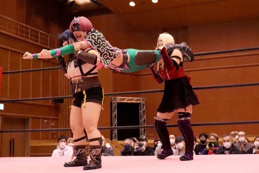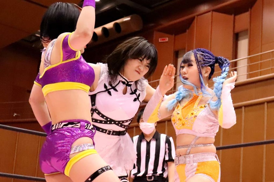 Yuki Arai & Moka Miyamoto defeated Pom Harajuku & Mahiro Kiryu in the first round of the Max Heart Tournament