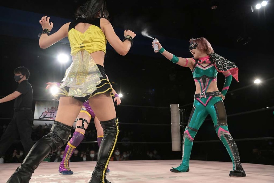 Mizuki defeated Nao Kakuta and Pom Harajuku in a three-way
