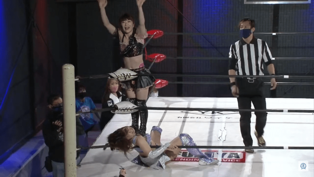 (I’d also recommend checking out MomoRingo’s match with Haruka Umesaki and Kakeru Sekiguchi from the 13/2 Oz show.)