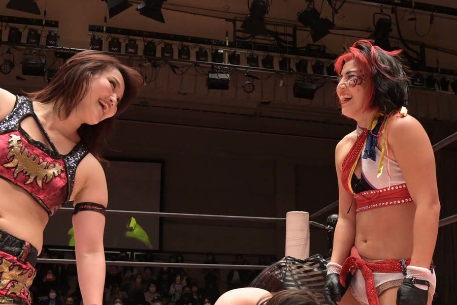 The match that would have originally opened the show was only three minutes long but had a lot of emotional heft. Reika Saiki hasn’t wrestled for a bit over two years and a half years after fracturing her jaw and recently announced her official retirement (from wrestling and muscles). Before she went, though, she wanted one last chance to rumble, taking on Arisu Endo, who is, in many ways, her protege. Endo was a member of the same idol group as Saiki (Cheer♡1) and was inspired to become a wrestler because of her. Not only was this a goodbye, but a chance for Arisu to wrestle her hero.