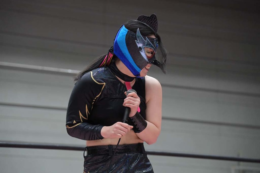 Since losing to Shoko, Aino has been working her way through a series of singles matches with rookies and lower carders. Up next in that gauntlet was a wee cat who was being particularly scratchy.