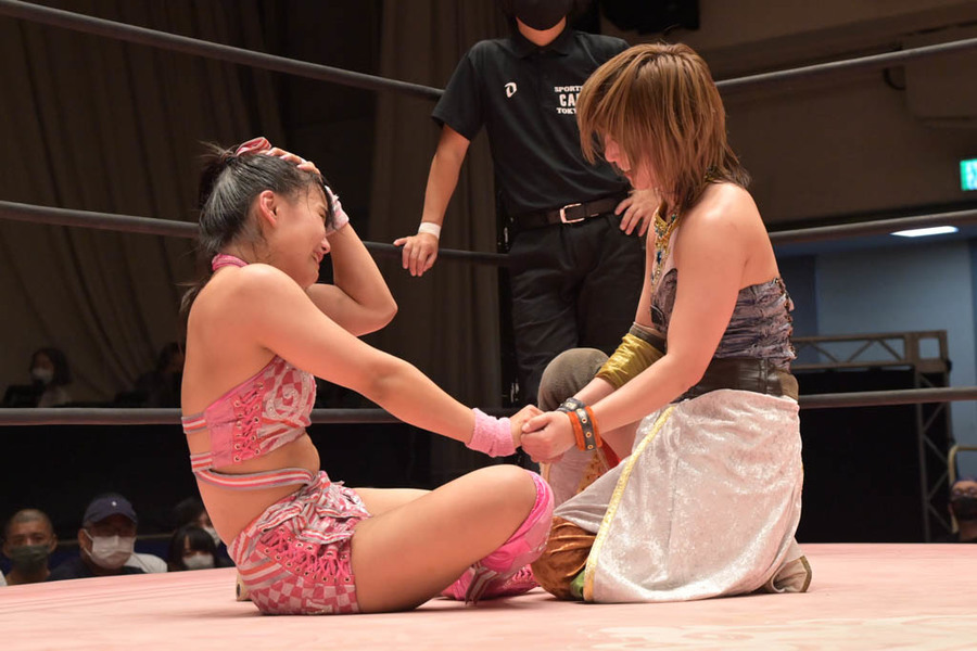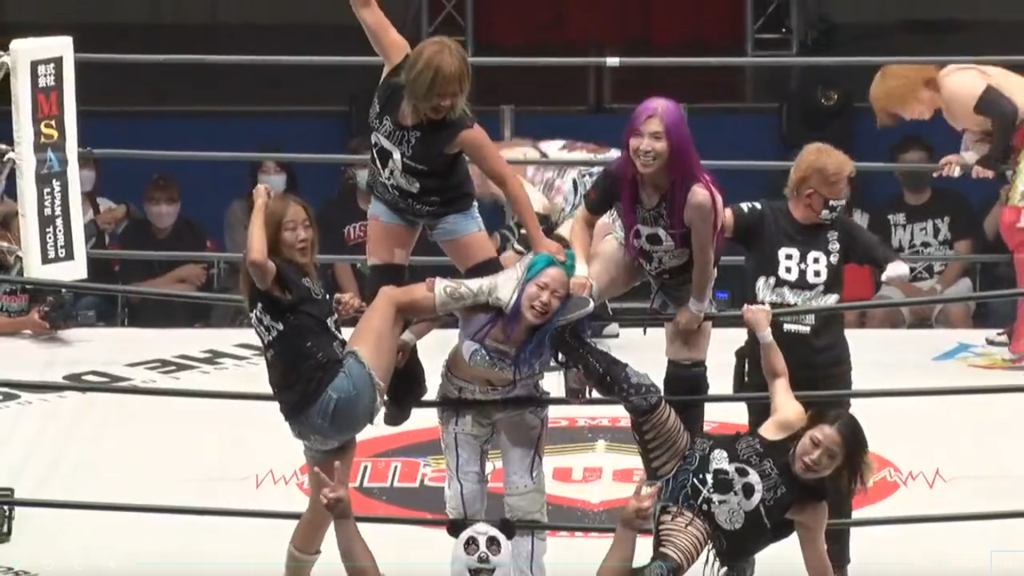 And it’s not that I expect either of them to headline Korakuens or regularly get marquee matches (although I wouldn’t complain if they did), but I do like to see their efforts getting appreciation, and giving them spots like this is a great way to do so. Matches with the Miyus and Yukas will always get attention, and the two of them making space for Raku and Pom’s worlds (albeit in very different ways) made it even better. TJPW doesn’t ask anyone to change based on who they’re facing but allows them to show how they can merge that style with the more ‘serious’ wrestling, which is how we end up with Miyu being infuriated into going full killer and Yuka beating Raku in her sleep.