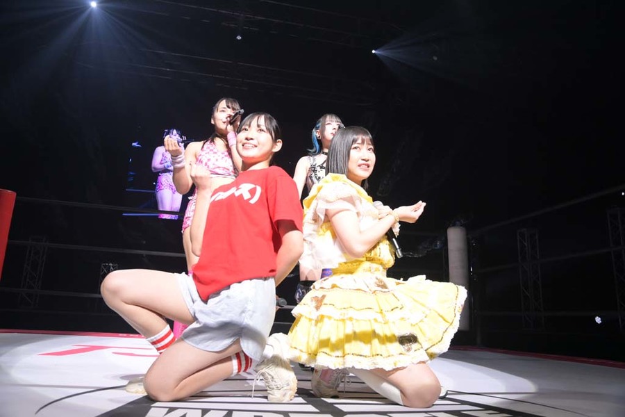We’ve got new rookies! Haru and Momo, both fourteen years old, are joining the TJPW family. No date was announced for their debut, as I believe they’re just starting their training. Equally excitingly, Shino joined the Up Up Girls on stage for the first time to perform Upper Kick and slotted straight in. She’s also working towards her wrestling debut, but her singing one went well, as she couldn’t hide her excitement. It’s nice to have the Up Up Girls back to full strength.