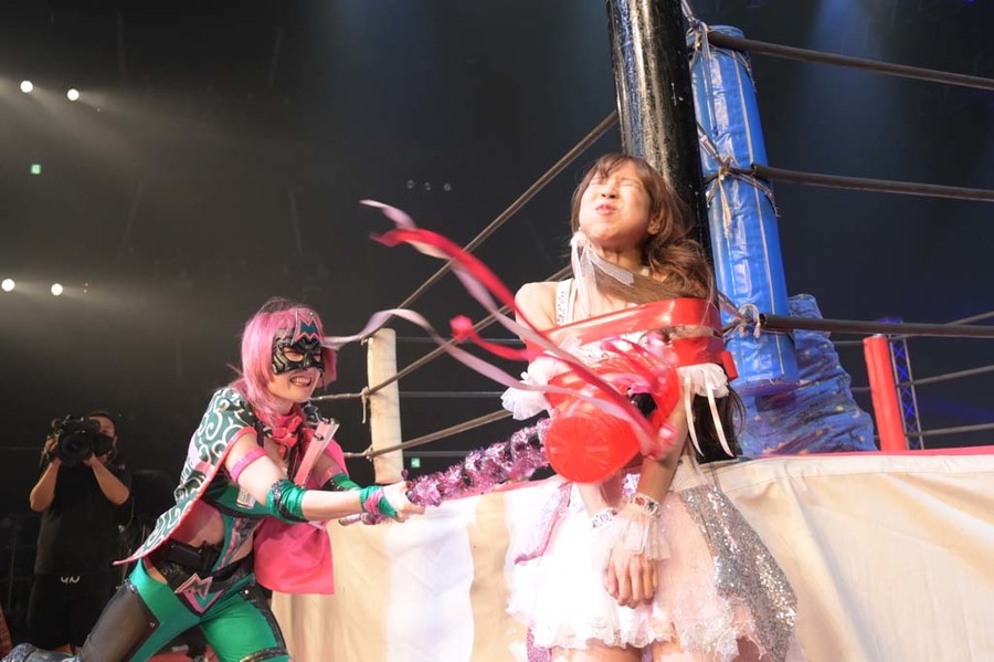 It wouldn’t be a big TJPW show without some Misao-sanctioned nonsense as she entered with a gun down her trousers, carrying balloons and decked out in glowsticks. She declared that this made her as kawaii as Mizuki before turning this into a hardcore match.