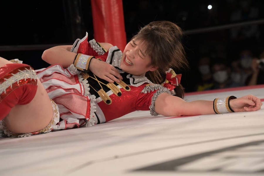 And while Manaka wasn’t as comfortable in the ring as Risako, where she impressed was in her selling. She sold Miyu’s onslaught well, collapsing exhausted to the ground but desperately trying to pull herself back up, refusing to go down easy even if she knew there was only one way this would end.