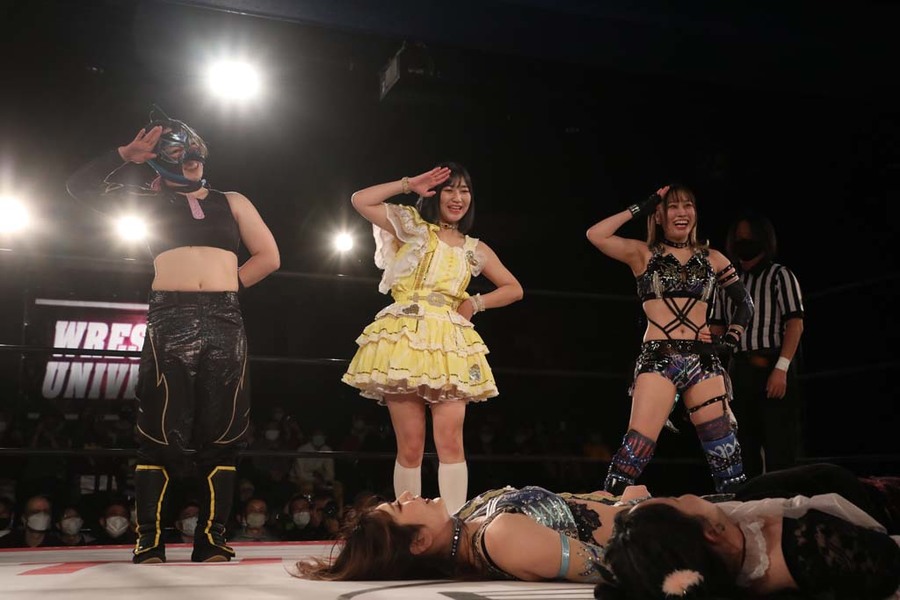 Yuki Kamifuku, Mahiro Kiryu & Haruna Neko defeated Hikari Noa, Raku & Kaya Toribami
