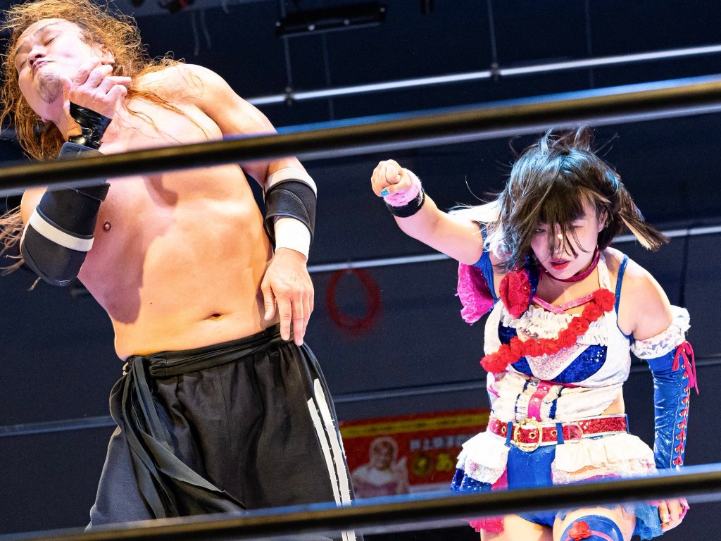 The second Kengo Mashimo match I saw on this trip was another one where he went up against a much smaller opponent, but it couldn’t have been more different. While Momoka tried to antic her way past him, Cohaku charged straight down the line, attacking him before the bell and kicking off a match where she attempted to sprint to the finish, dealing enough damage before Kengo could use that power to wipe her out.