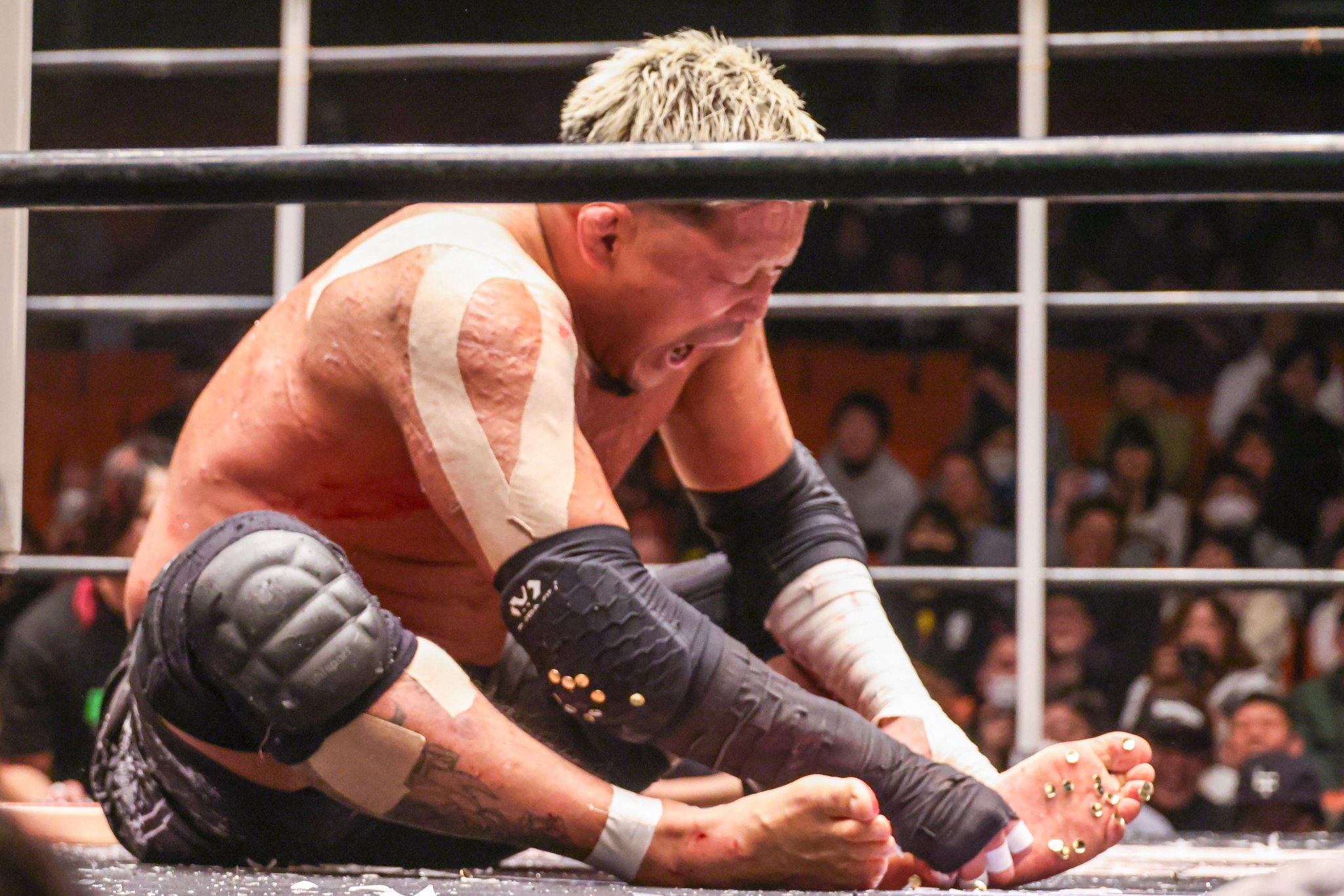 It wasn’t just the lack of appropriate footwear that made this match shine, though. There was some proper sicko deathmatch shit in here, from Takeda being balanced on the top of his head in a box of tacks to Ueki wrestling a decent chunk of the action with a bunch stuck in the side of his face, having lodged themselves in there when Takeda repeatedly drove him into them. There is often a feeling that deathmatches have to go bigger and scarier to achieve the shock and awe that they once got easily, but I don’t think that’s ever been the case. Yes, diving from a scaffold through a web of barbed wire into a thousand panes of glass will always get some attention, but the great stuff is built on a streak of invention. It’s what Takeda and Ueki brought here, and it created a series of visuals that stuck with me long after the match was over. I’m far from a deathmatch expert, preferring to dip my toes in here and there, but this is the kind of stuff I want to see, and I had an absolute blast with it.