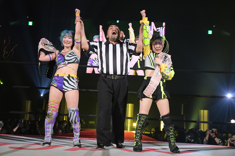 Daisy Monkey (Suzume & Arisu Endo) defeated Yukiniki (Ryo Mizunami & Yuki Aino) to win the Princess Tag Titles
