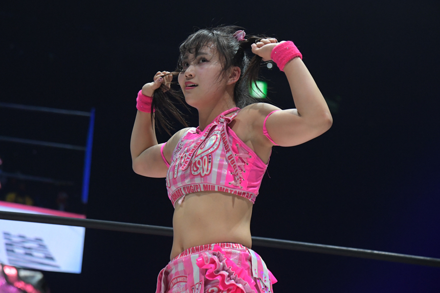 Dressed in her new Saki Akai-inspired gear, Yuki Kamifuku was determined to throw Yuki Arai off her game in this one. Whether it was slipping out of the ring, throwing a few poses or yanking Arai’s throat into the ropes, everything Kamiyu did seemed designed to try and rankle the idol, perhaps hoping she’d lose her cool or stumble at a key moment. It was a smart strategy, and as one of the better bullies on the TJPW roster, Kamiyu was the perfect person to execute it.
