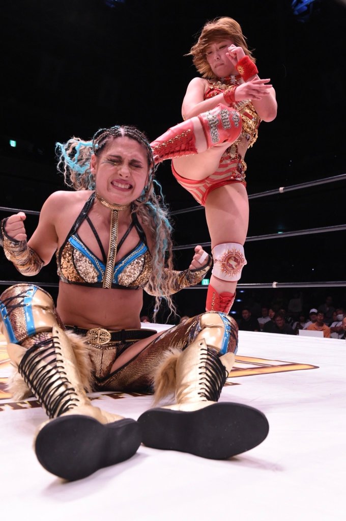Funnily enough, it’s the exact opposite of who her opponent, Sareee, usually is. Sareee can occasionally go overboard herself, relying on spamming high-impact moves to make things feel epic. The difference is that when Sareee talks about what she stands for, that continuation of joshi’s violent history, I believe her. I don’t doubt for a second that she loves that style with every part of her being. Even when she left Japan to head to WWE, I understood that she was doing it with the mission of spreading her wrestling to the rest of the world. I always suspected it was a doomed task, but I respected her for trying to do it. Her flaws are overcome by her ironclad belief in what she’s doing, which makes even the most egregious no-sell or one-count kickout work. It’s why I burst into tears watching her and Arisa Nakajima beat the shit out of each other in Korakuen Hall. It felt like it meant something.