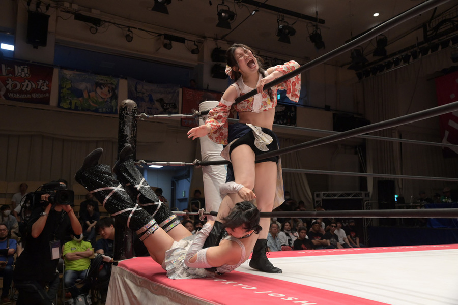 Between matches, TJPW announced that Pom will be teaming with Aja Kong and Max the Impaler at Wrestle Princess in a bout referred by Aoki Shiori (the now former SKE48 idol who has reffed before). That explains the meanness.