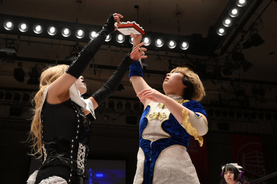 Kyoraku Kyomei (Hyper Misao & Shoko Nakajima) defeated PomPaler (Max the Impaler & Pom Harajuku) to win the Max Heart Tournament