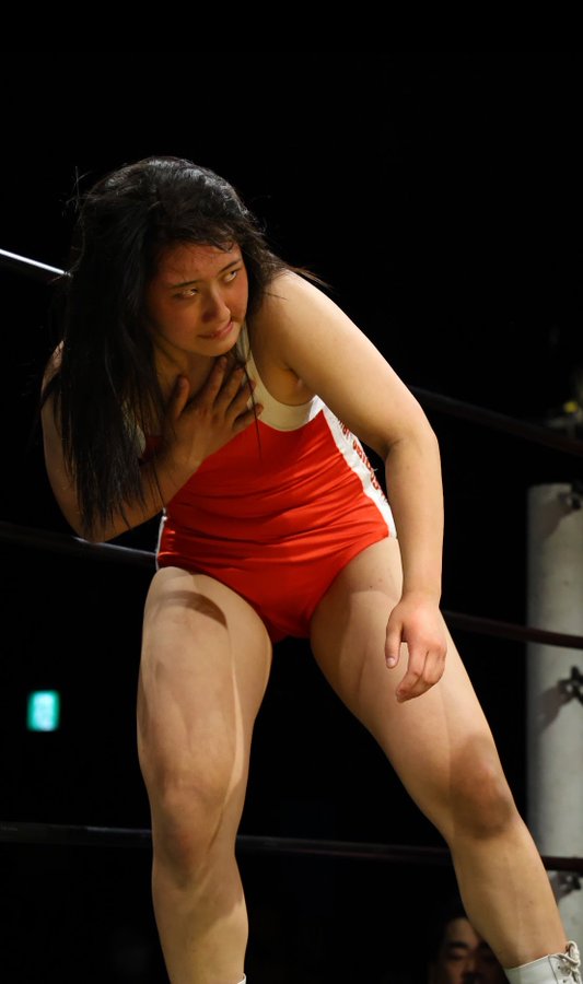 Part of what makes Senka Akatsuki so exciting is that she’s all forward momentum. I’m not entirely sure if it’s that she doesn’t want to stop or hasn’t quite figured out how to, but it amounts to the same thing. When she’s in the ring, she’s coming at you, using the fact that she’s already bigger and stronger than a lot of her opponents. Not only does it make her thrilling, but it forces experienced wrestlers to do more than plug her into their standard match. They have to figure out how to deal with this overenthusiastic bundle of muscles.