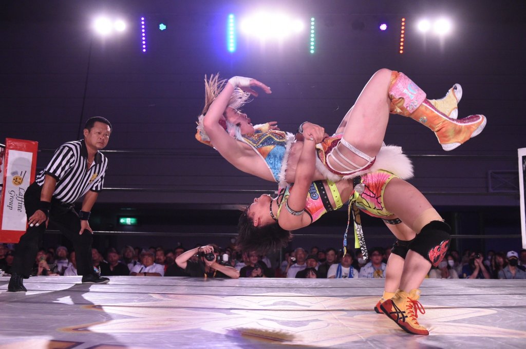 And that’s because you get to watch wrestlers like Utami Hayashishita (more on her further down the page), who transformed from an exciting rookie into being one of the faces of the late-Stardom Rossy style, getting pushed to do something different. I didn’t care for her match with Iroha, as they’re ultimately two very similar wrestlers, but when you put her in there with Mio Momono, she has no choice but to adapt. Momono probably could put on an epic, but she’s smart enough to know that’s not how to do it, so instead she forced Utami to play the powerhouse, desperately trying to get her hands on the scampering menace. Similarly, watching Miku Aono, who I’ve been quietly of the opinion has become a worse wrestler since leaving AWG, be pulled back to the basics by Ai Houzan, as she was able to dominate with those kicks before nearly being caught by the younger wrestler, was the most I’ve enjoyed her work in years.