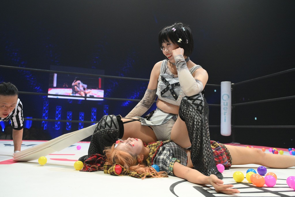Pom Harajuku defeated Rika Tatsumi in a “Flag Scramble” Authorised Weapon Death Match