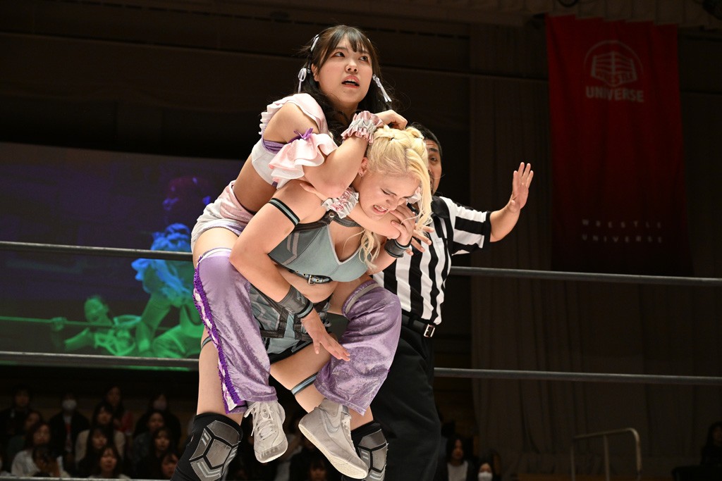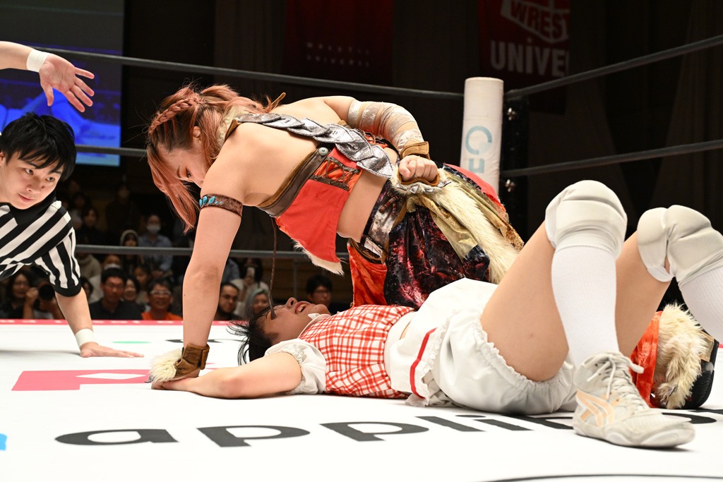 Ober Eats (Yuki Kamifuku & Wakana Uehara) defeated Hot Shots (Yuna Manase & Toga) to retain the Princess Tag Titles