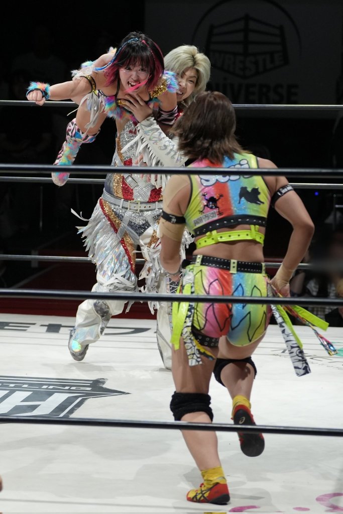 Plus, you still have all that chemistry. Mio and Takase took a chunk of the final act, and they were great together, even with a touch of miscommunication when the ref failed to count what was clearly supposed to be the winning three. Oka, meanwhile, has come so far. I firmly stand against the idea that she’s only gotten good in the last couple of years. She was good back in the Mystic Young Fox days. However, she has found her personality, and as she scampers around, being a menace, you can’t help but delight in her wrestling.
