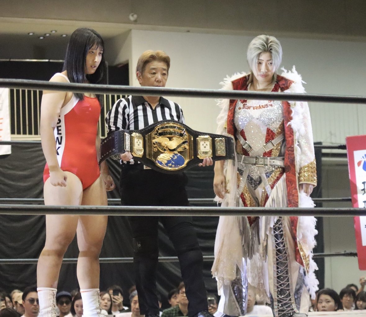 And it worked. Slowly, but surely, the Ishikawa fans started to come to life, chanting on their hometown girl and willing her to get out from underneath the Ace. It meant when those bursts of energy came, as she barrelled her way through the champ or hoisted her up for suplexes, the crowd were delighted. They wanted it from the start, but it was all the sweeter for having been denied to them. Truthfully, this is one of those matches where everyone knew the switch wouldn’t be happening. While Marvelous might have allowed Akatsuki to skip the queue, they’re not about to put the big belt on her this early in her career. However, you can still give the fans what they want, those moments of glory as Akatsuki hammers her way through the champion. They’ll accept defeat if they think they’ve been richly rewarded for their support beforehand.