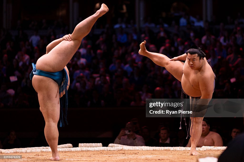 And this bout captured one of the things that I’ve found fascinating about it all. It’s a world of stoicism and humility, where celebrating or showboating is practically non-existent. Even the most stoic of Japanese wrestlers looks expressive and over the top compared to the rikishi, and yet, now and then, you get a slight crack in that facade, and because everything is played straight, it doesn’t take a lot to feel like a big deal. Here, it came in a thrilling display of one-upmanship, as Kotoeiho showed off his beautiful stomps before the fight, holding his leg in the air for a seemingly impossible period of time. Apparently, it’s something he’s famous for. However, Tobizaru was having none of that. The ‘Flying Monkey’ met the challenge, raising his own leg and holding it in place. He couldn’t do it for quite as long, or quite as elegantly as Kotoeiho, but there was a clear message there, as he delivered some rare mind games and woke up the crowd in the process.