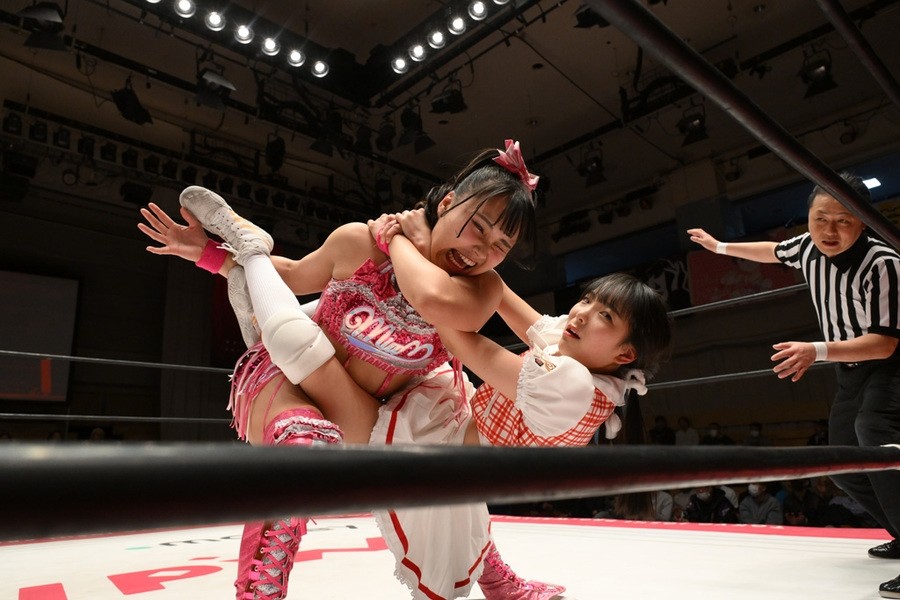 Even more impressive is that these rookies, three of whom at this point had wrestled for less than a year, already feel distinct from each other when wrestling, too. A lot of young joshi wrestlers are similar. It’s all dropkicks and forearms, as it’s more about showing passion than doing anything fancy. That’s not the case here, though. Senka and Ayame may still be working from a limited playbook, but they make it feel very different. In Akatsuki, you’ve got the bullish power of someone determined to bulldoze their way through opponents. Sora, meanwhile, is a bit more subtle and a lot more sympathetic. Even early in this match, she’s more emotion than heft, but it works for her. She’s chasing behind these other three, but when she starts going for those flash pins at the end, trying to steal the win, people eat them up. She’s the easiest person in the world to root for.