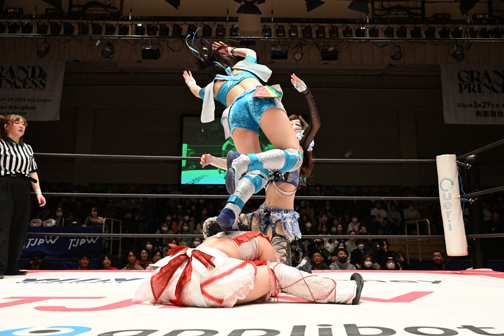 Ober Eats (Yuki Kamifuku & Wakana Uehara) defeated Shunrai Rekka!! Prism Greed (Yuki Aino & Haru Kazashiro) to retain the Princess Tag Titles