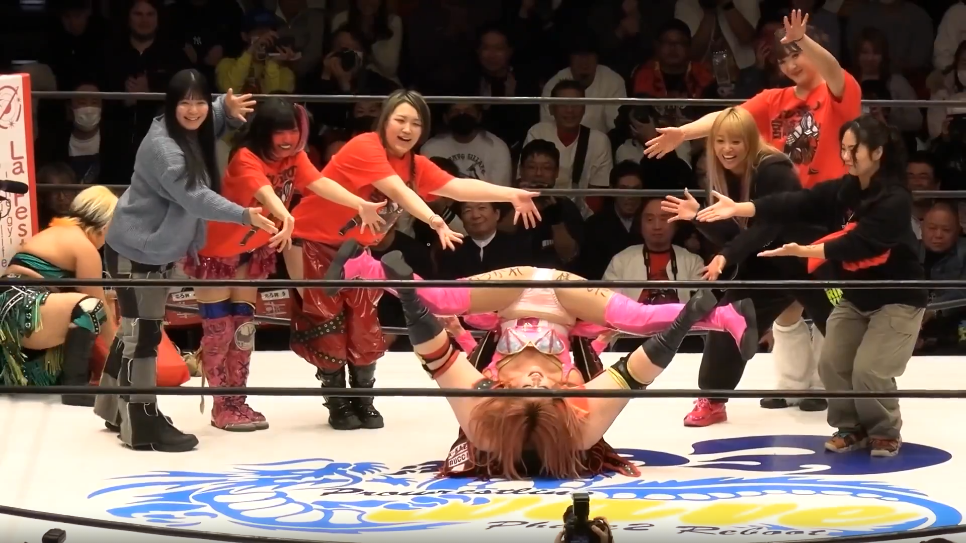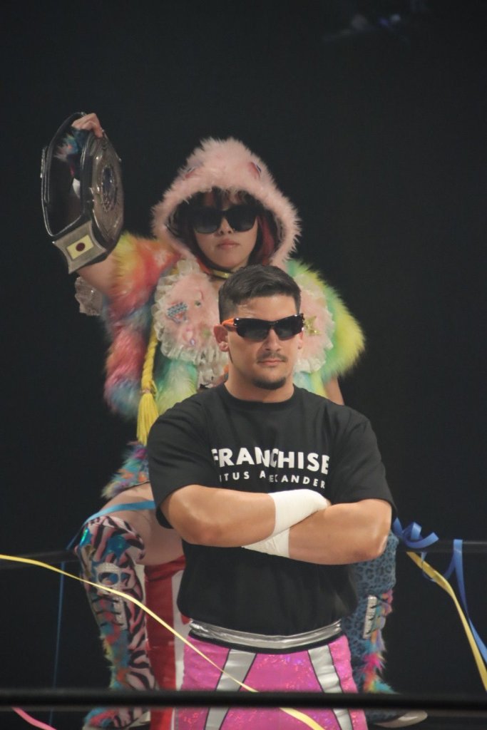 On the one hand, this was a shtick-heavy match. Mio and Titus reprised their BOSS & 子分 (henchman is probably the most accurate translation, but since this is Mio, I think minion is probably more appropriate) team, which meant Mio spent a lot of the action with her arms folded in an authoritative posture. Then there was Yosuke Santa Maria going around kissing everyone, which I don’t think Chig is ever going to tire of. To be clear, none of this is a complaint. Mio and Titus are always a fun pairing, and there are worse undercard comedy acts than Santa Maria out there. It’s just probably not enough to make this match worthy of note.