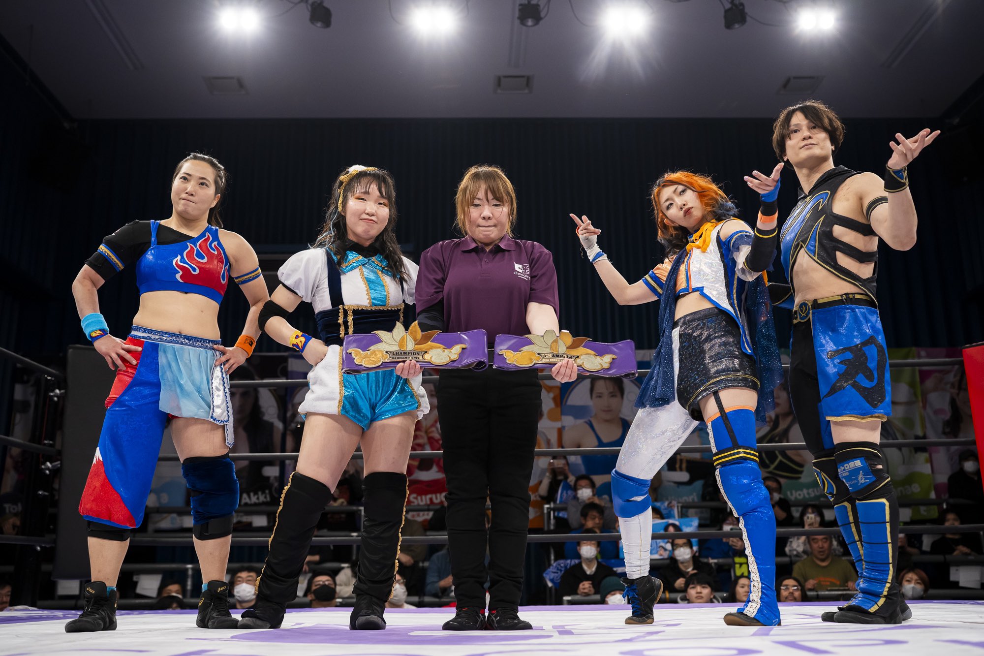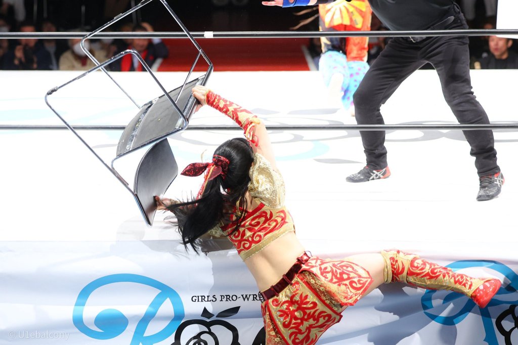 It’s also a change that opens up a whole new intersection of routes to travel down. As I write, the video hasn’t gone up on YouTube yet, but I suspect there will be a focus on a disappointed-looking Suruga at ringside after the match. She sold it well, the conflicting emotions of seeing one of her kids get the title, but knowing that means Miya is drawing ever closer to her spot. What might not get picked up on was Chie, who was crouched in front of me for most of the show. Despite having regained her Asia Dream Tag Titles earlier in the night, she looked pissed. It’s been no secret that Miya was snapping at her heels, and there was clearly a grimace of anger that she managed to snatch this moment before her. Chie’s never been great at hiding her emotions, and at that second, you could tell that she would be chasing Yotsuba until she levelled the score.