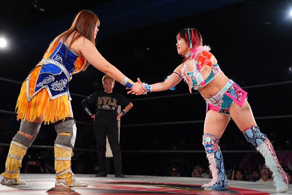 Most of the talk around this title change has focused on Miya Yotsuba. Rightfully so. She’s a young wrestler who has been given, by ChocoPro standards, the jetpack treatment. Mei Suruga, who was branded with the genius tag from day one, took almost twice as long to get to this point. Everyone at Ichigaya clearly sees a lot in Miya, and they’re right to do so, even if I do wish she’d ditch the Miya Hammer as a finish. It’s just not impactful enough, folks.