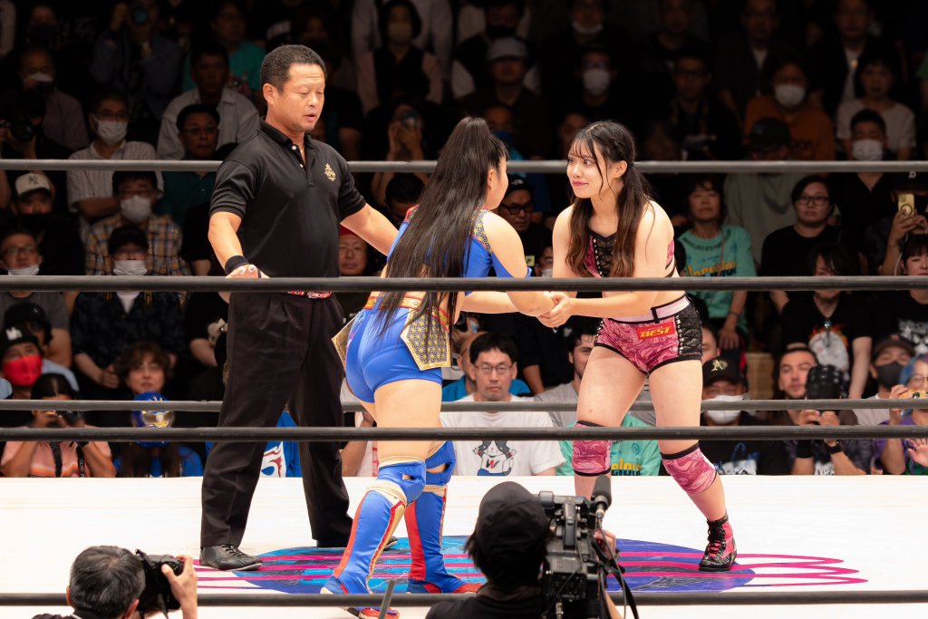 With Rea Marumori being Rossyed, Sendai Girls are down to one rookie (to be fair, her departure does seem like it was a mutual decision that served the best interests of all involved). However, in sadness comes opportunity, as outsider Yura Suzuki appears to be stepping up and confirming her position as YUNA’s generational rival. Unfortunately for YUNA, that’s not been going so great. In their sixth singles match (and the second time in a row they’ve opened a Korakuen together), YUNA once again tasted defeated, putting her record to a somewhat unimpressive 0-6. Oh well, there is always next time.